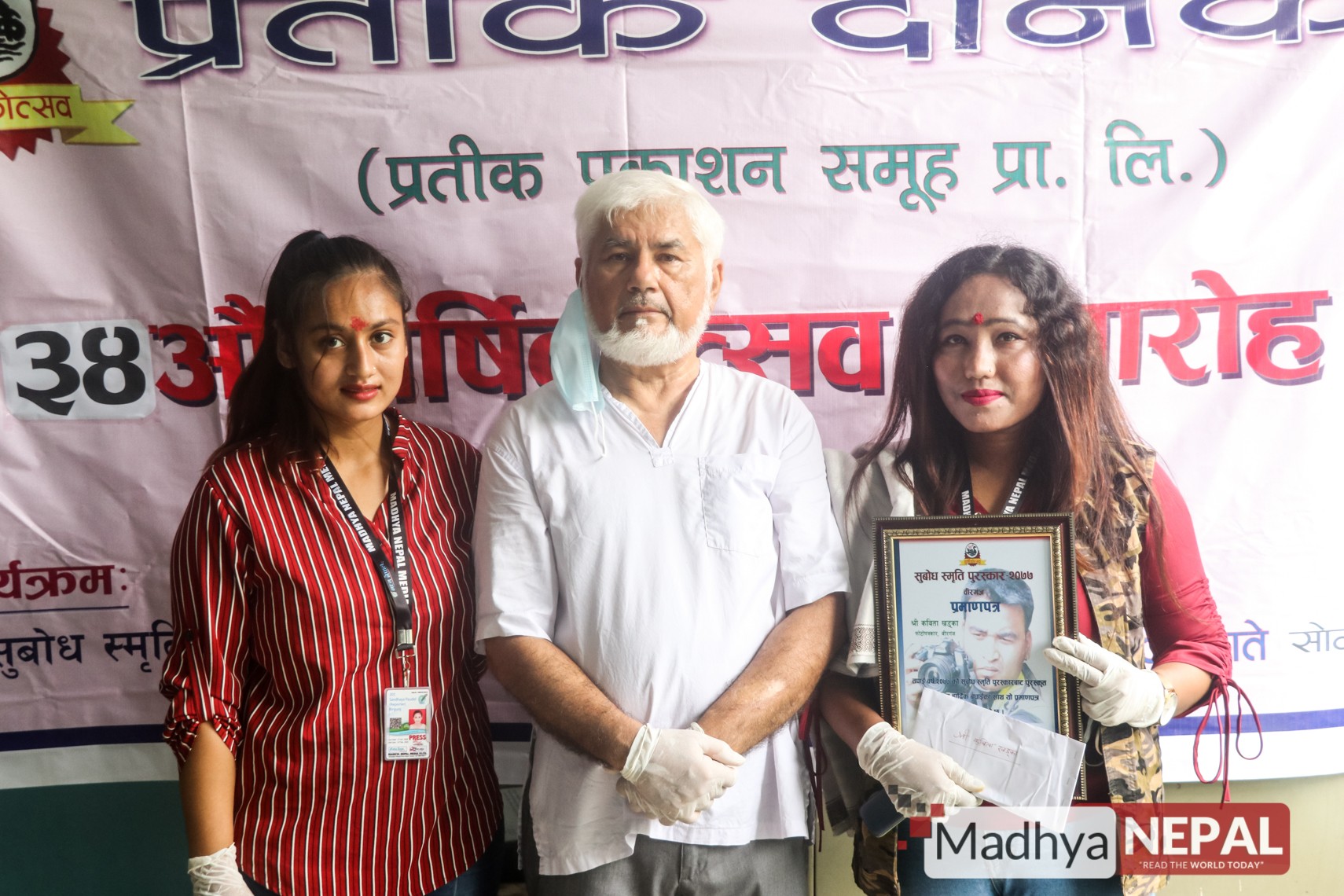 प्रतीक दैनिको ३४ औँ वार्षिकोत्सवको अवसरमा सुवोध स्मृती फोटो पत्रकारिता पुरस्कार २०७७ यसबर्ष मध्य नेपाल पत्रिकाकी कविता खड्काले प्राप्त गरेकी छिन् ।