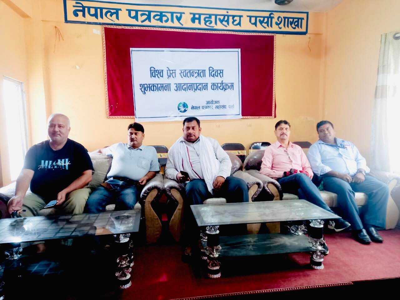 विश्व प्रेस स्वतन्त्रता दिवसको अवसरमा पर्सेली संचारकर्मीहरुले वीरगन्जमा पनि दिवस मनाएका छन् । प्रेस स्वतन्त्रता दिवसको अवसरमा नेपाल पत्रकार महासंघको सभाहलमा शुभकामना आदान–प्रदान कार्यक्रमको आयोजना गरी यहाँ पनि विश्व प्रेस स्वतन्त्रता दिवस मनाइएको हो ।