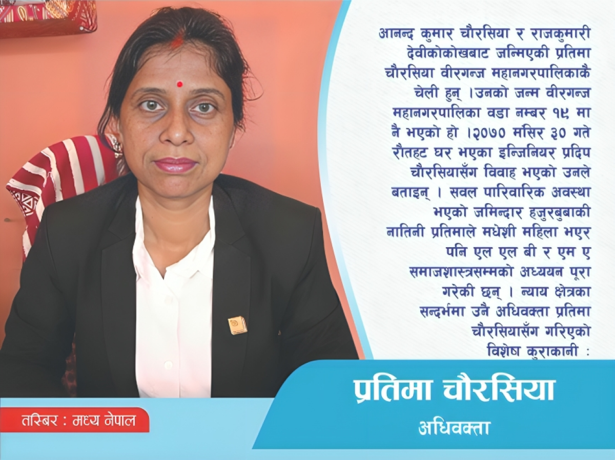 न्यायिक क्षेत्र सबैको लागि सम्मान र उपलब्धि पनि हो । महिलालाई काम गर्न धेरै गाह्रो भएकोले महिलाको लागी न्यायिक क्षेत्र चुनौती पूर्ण त छँदैछ । अहिलेको परिपेक्षमा हेर्ने हो भने अदालत लगायत अन्य क्षेत्रमा पनि महिलाहरुको लागि त्यति पहुँच देखिएको छैन । सरकारी जागिरमा लोक सेवा आयोगबाट पास गरेर न्यायिक क्षेत्रमा काम गर्न आएको देखिएता पनि प्रयोगात्मक रुपमा काम गरेर आएको देखिएको छैन । पर्सा जिल्लाकै कुरा गर्ने हो भन्ने प्रयोगात्मक रुपमा हामी तीन जना महिला मात्र छौ । जसमध्ये एक जना धेरै वरिष्ठ हुनुहुन्छ र अहिले उहाँ आउनु हुन्न । अर्को एक जना अधिवक्ता हुनुहुन्छ र एउटा म मात्र छु ।